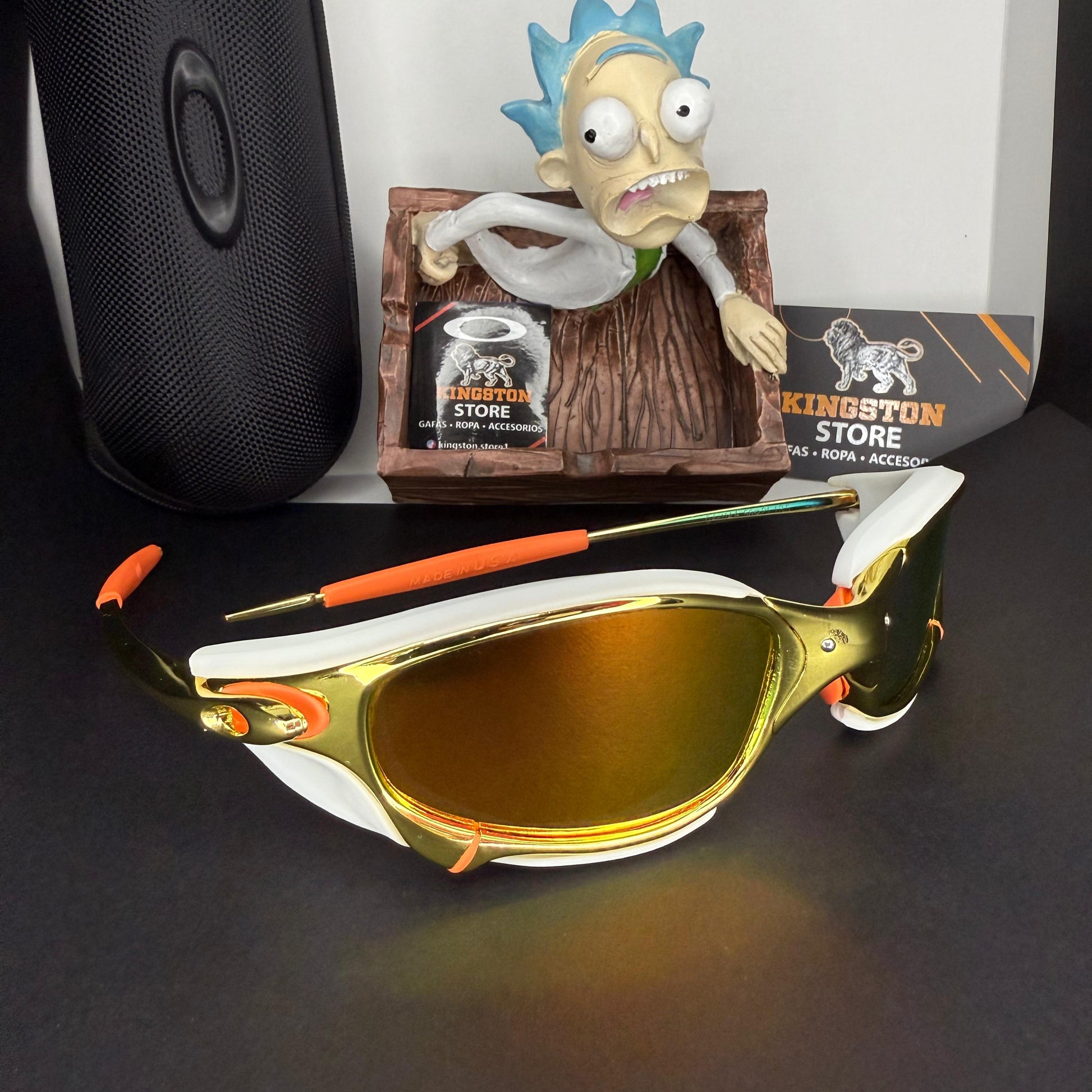 Las gafas JULIET DORADA con sideblinders blancos cuentan con un marco metálico resistente y lentes polarizados que reducen el deslumbramiento, mejorando la claridad visual y protegiendo contra los rayos UV.