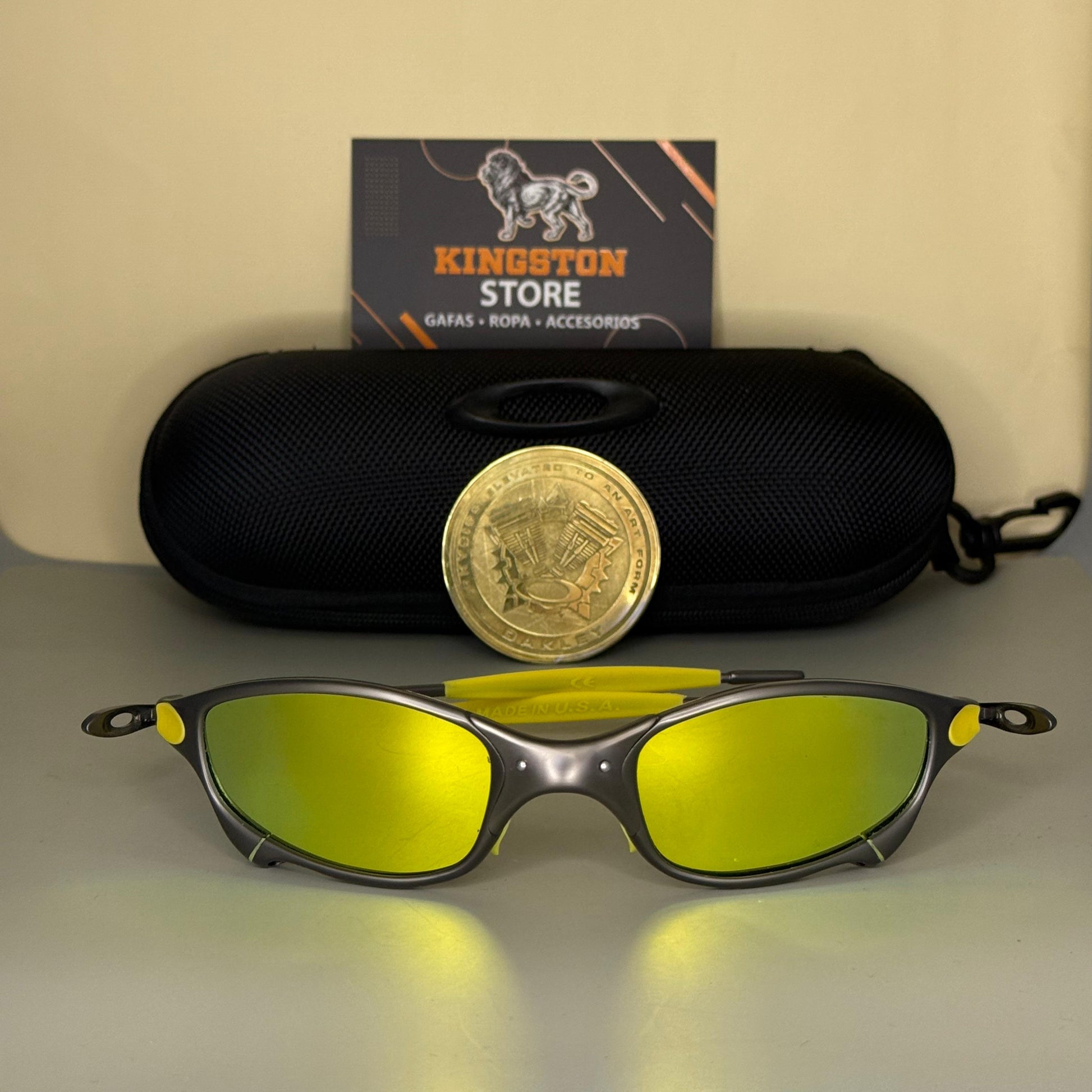 Las Juliet Platino lente Amarillo Full Metal destacan por su estructura metálica robusta y elegante, con un acabado que resalta su carácter exclusivo. Sus lentes polarizados ofrecen una visión nítida y protegida contra reflejos, brindando comodidad en cada uso.