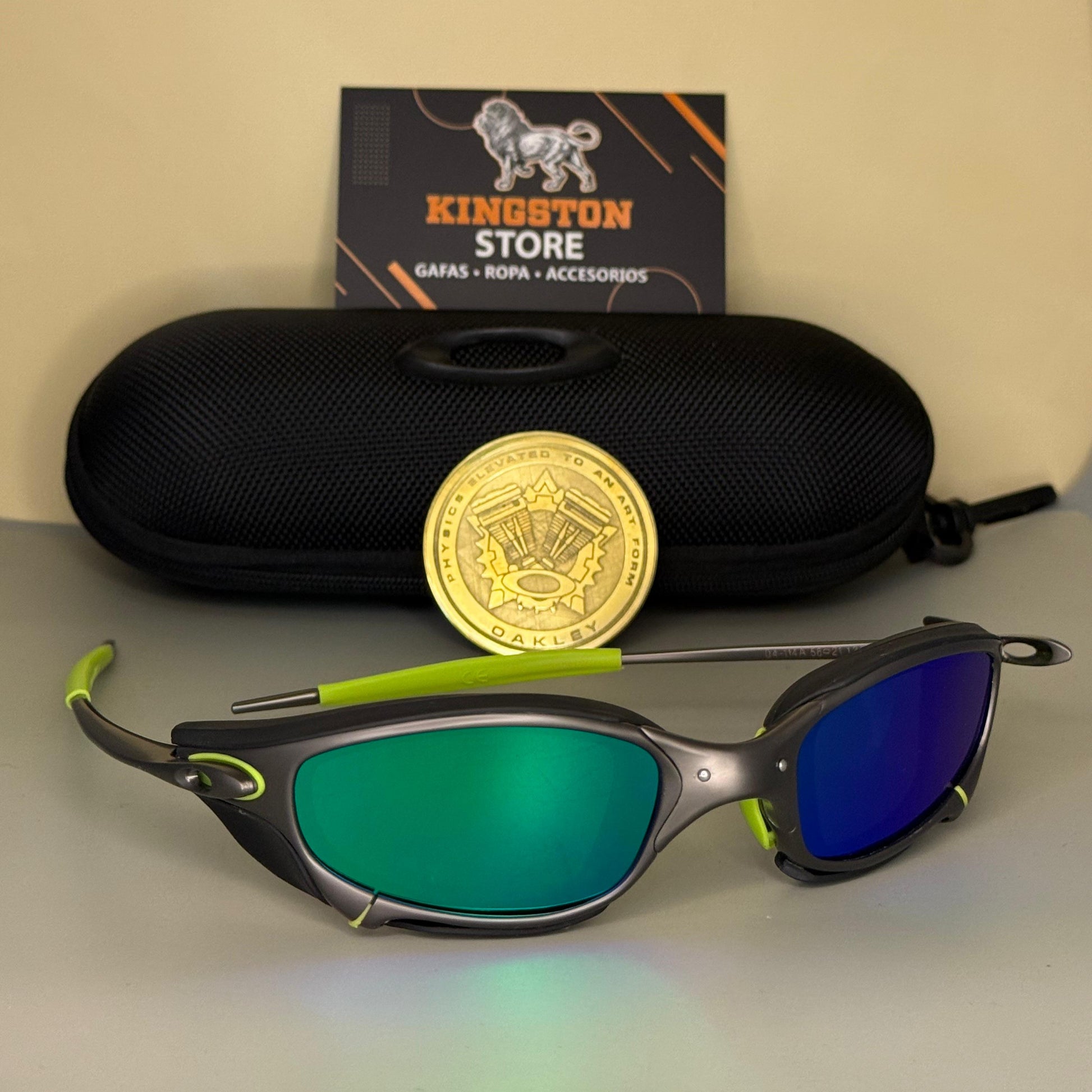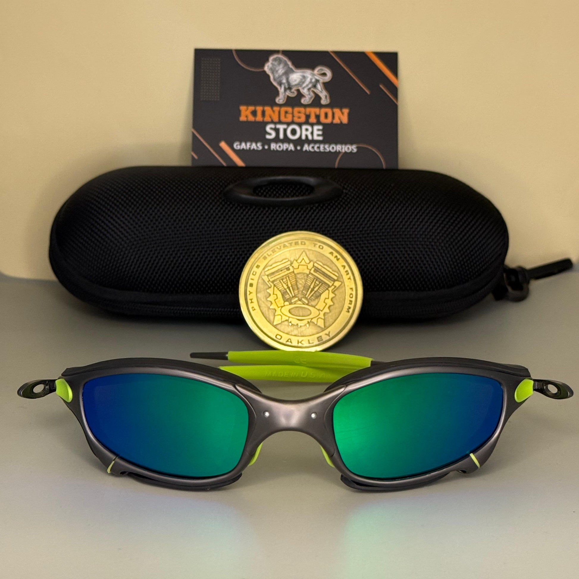 Las Juliet Platino lente verde + sideblinders Negros Full Metal destacan por su estructura metálica robusta y elegante, con un acabado que resalta su carácter exclusivo. Sus lentes polarizados ofrecen una visión nítida y protegida contra reflejos, brindando comodidad en cada uso.