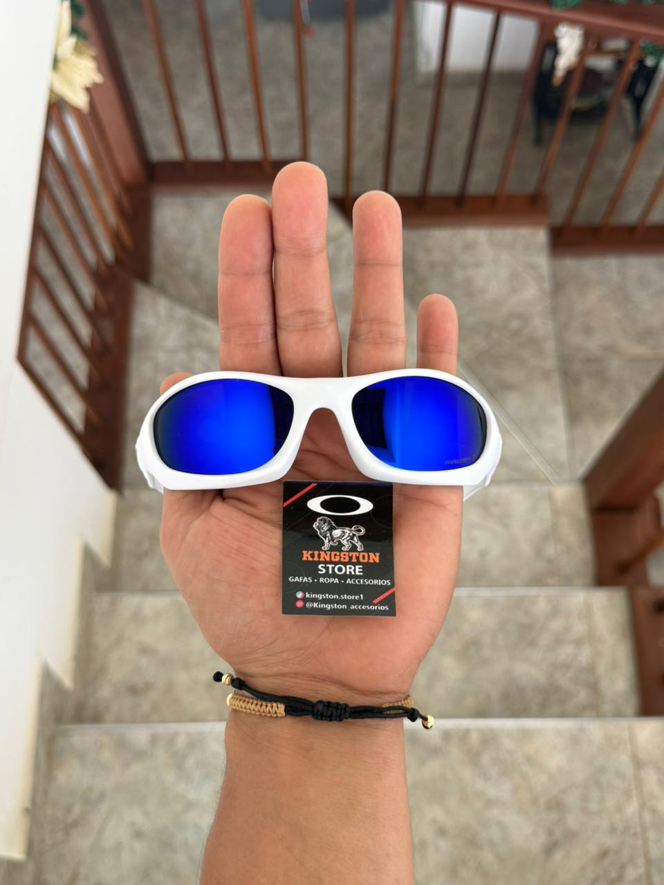 Gafa deportiva de alto impacto con marco blanco LENTE AZUL OSCURO resistente y ligero, diseñada para uso diario y actividades al aire libre.