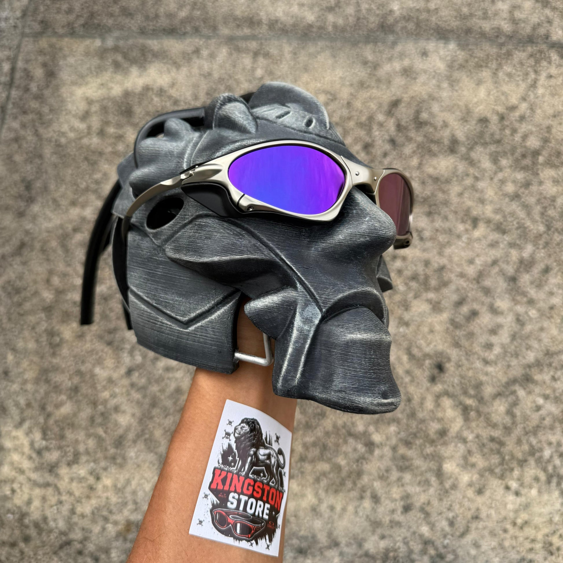 Un diseño compacto y potente que refleja personalidad. Su estructura metálica resalta la fuerza del modelo, mientras que los lentes morados añaden un toque distintivo y elegante. Gafas exclusivas que combinan estilo y calidad premium en cada detalle.